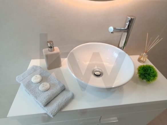 Área Social (29m²): Um conceito open space fluído que se estende para uma varanda aberta, perfeita para o café da manhã ou para relaxar ao final do dia. A cozinha, de linhas brancas minimalistas, está totalmente equipada com eletrodomésticos encastrados, mantendo a estética limpa e organizada.
