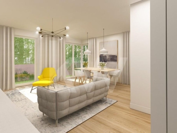 Este apartamento é composto por:Sala em open space, 2 quartos com roupeiro.