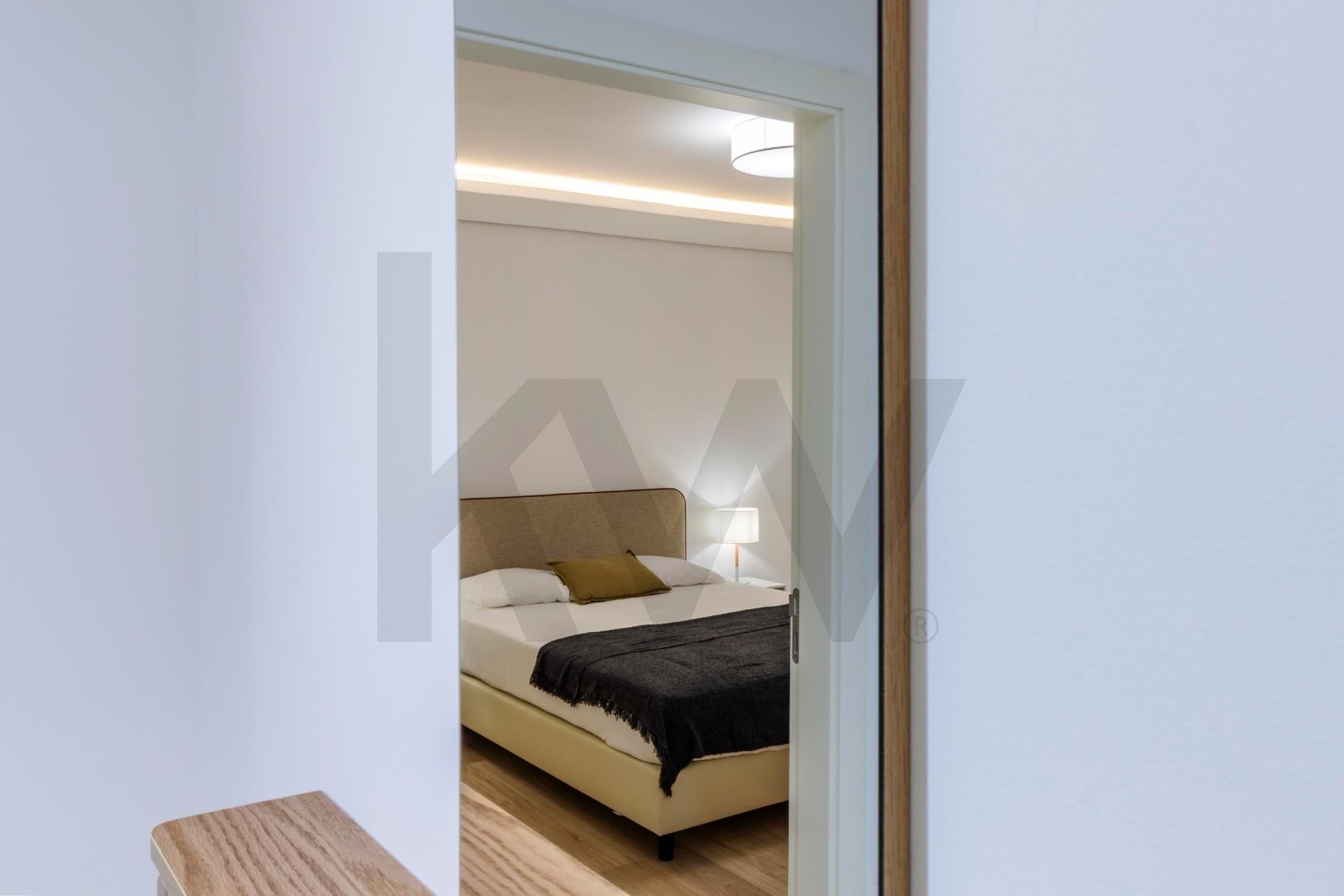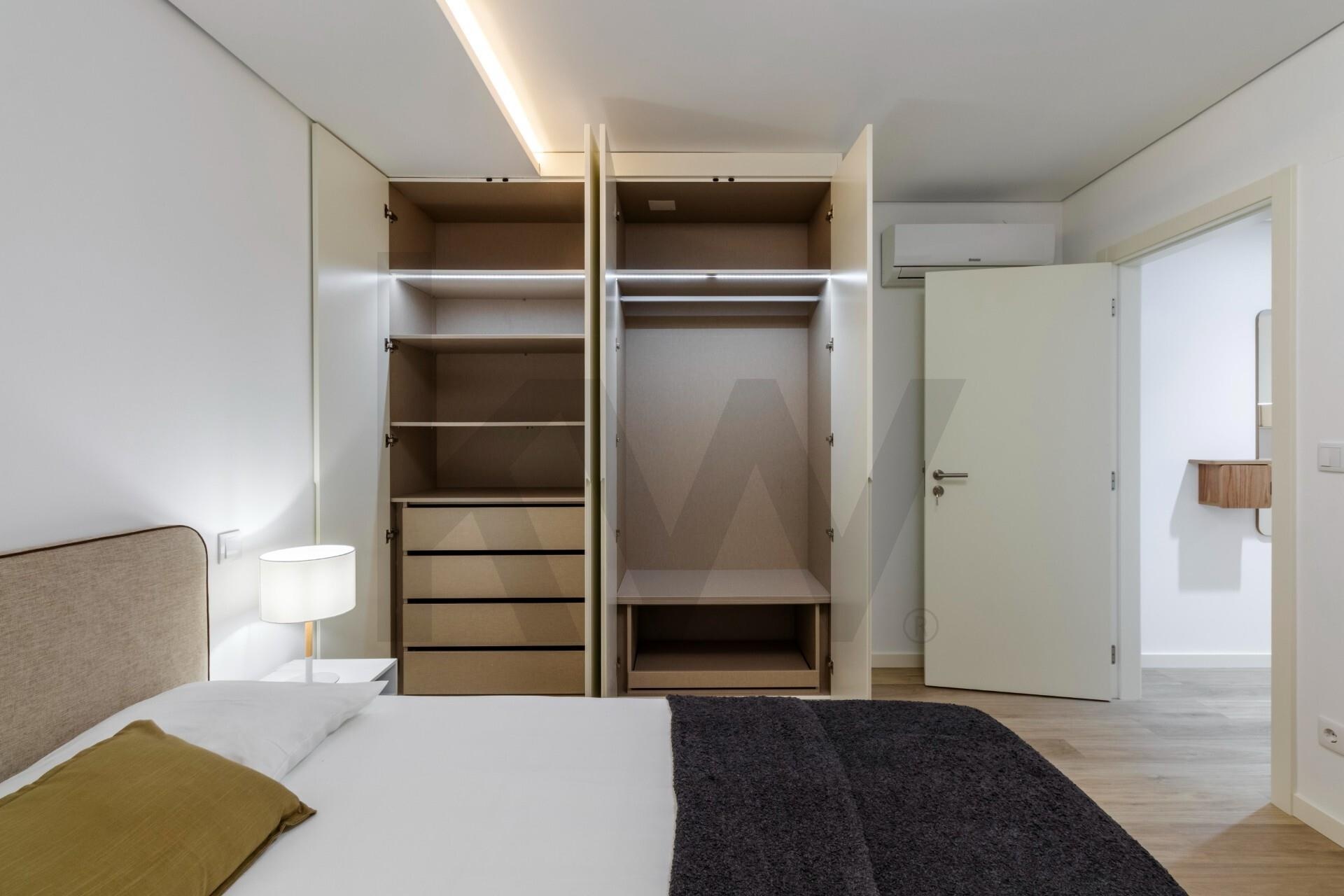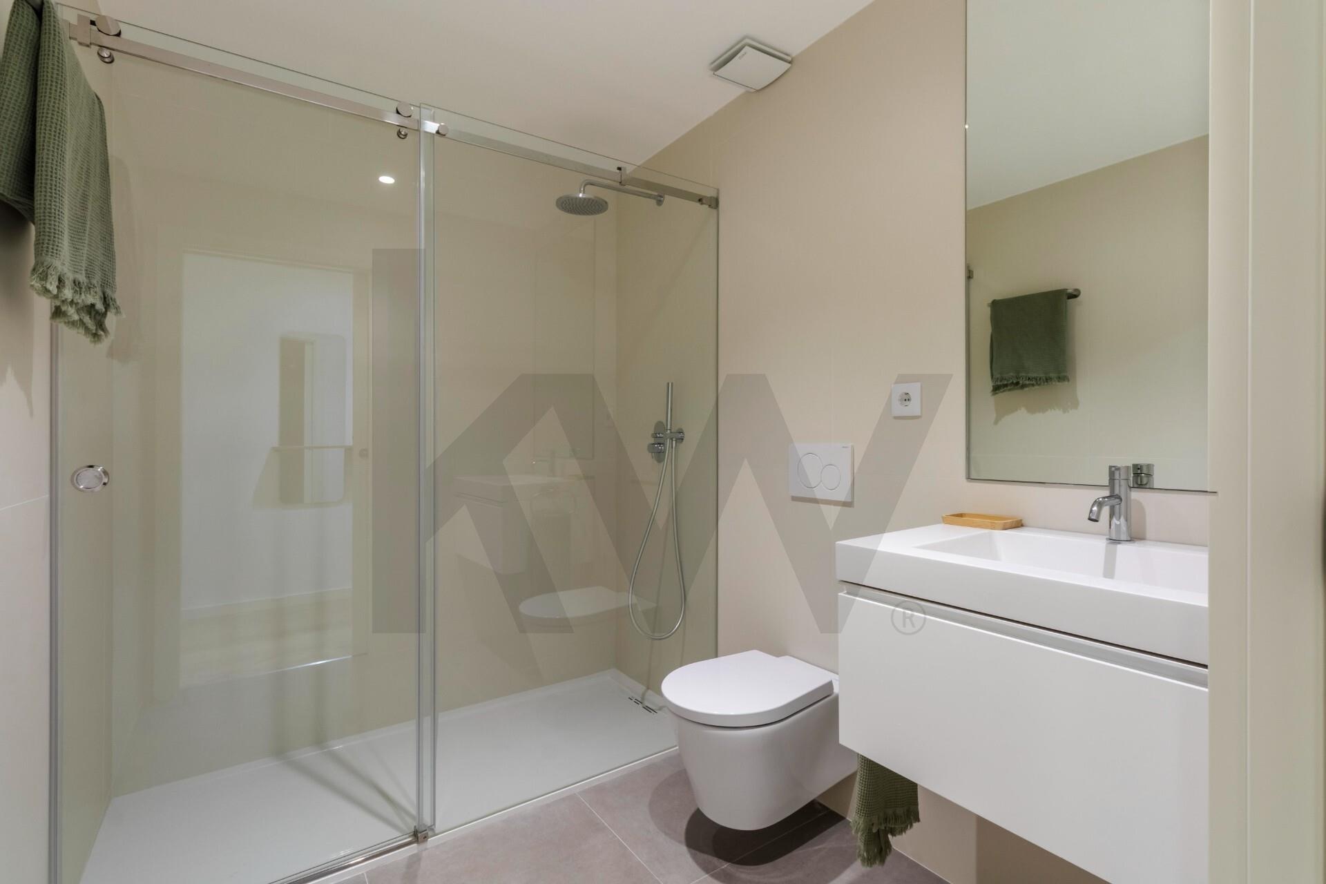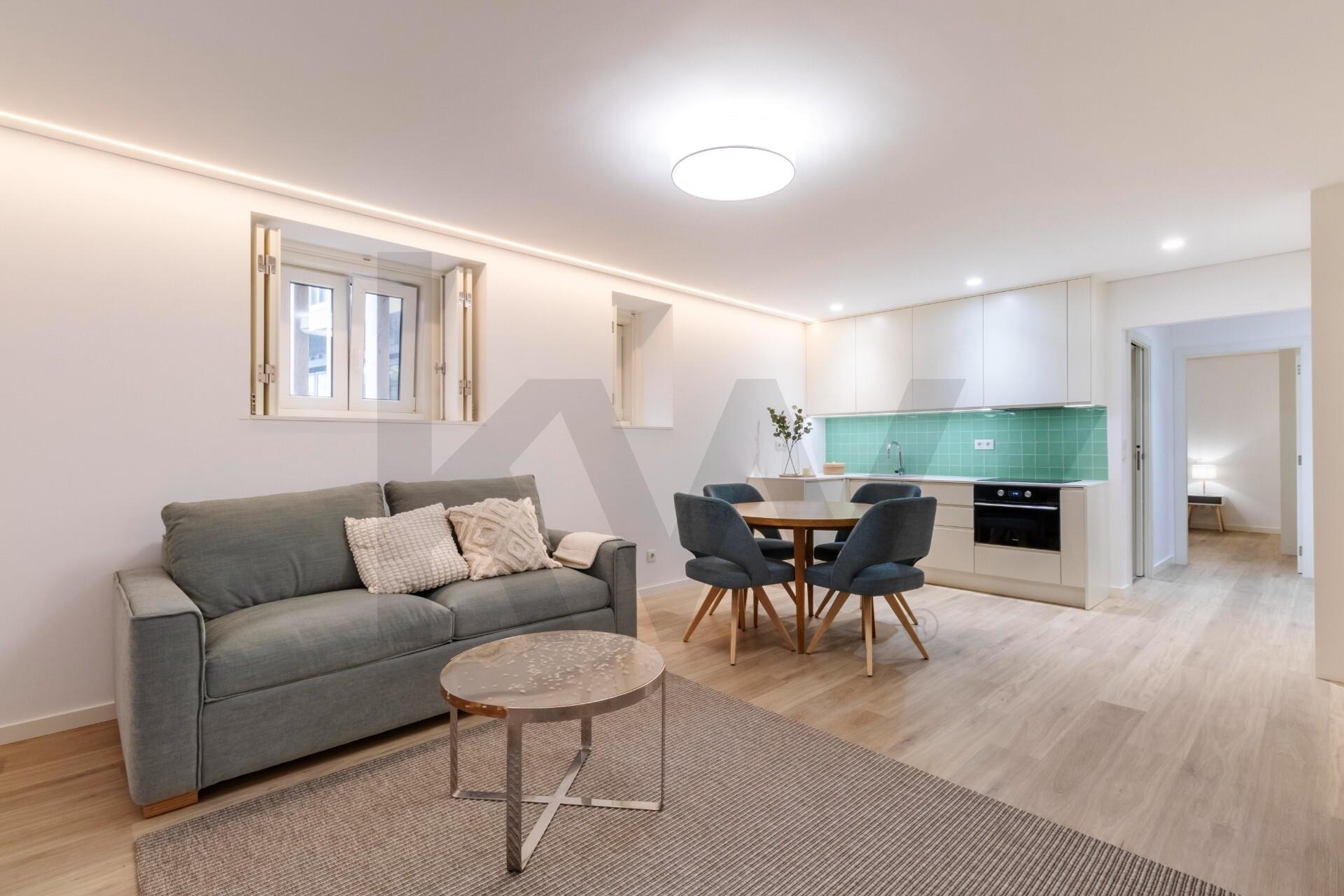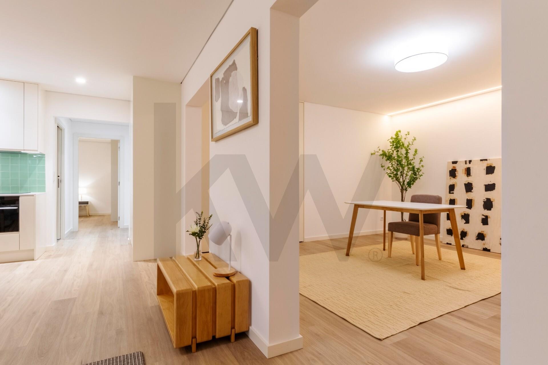 A cozinha está totalmente equipada com eletrodomésticos da marca TEKA (placa de indução, forno, frigorífico, máquina de lavar loiça e máquina de lavar/secar roupa) e o apartamento dispõe de ar condicionado, assegurando praticidade e conforto em todas as estações do ano.