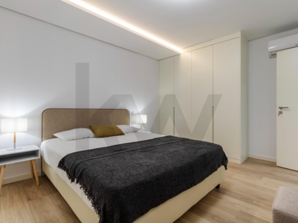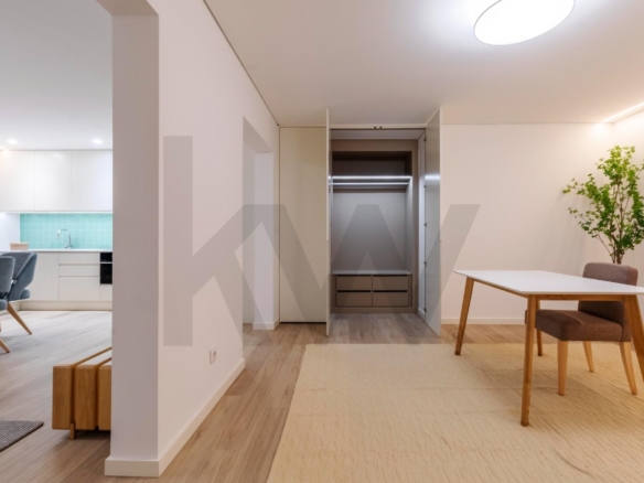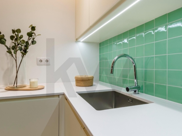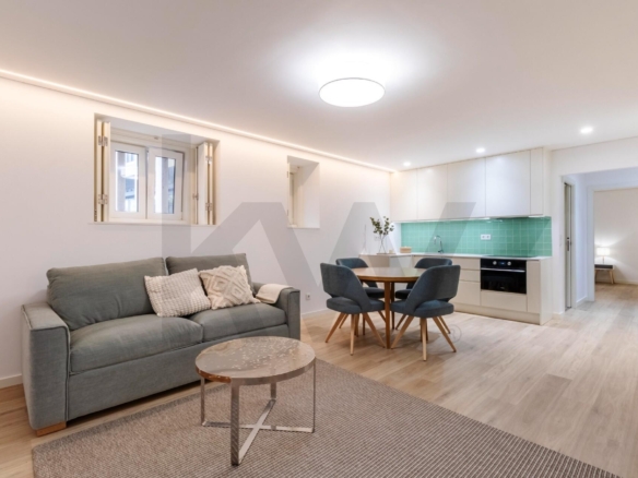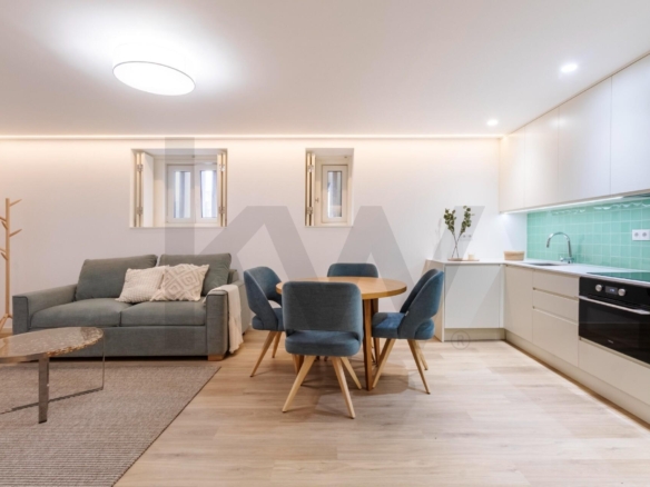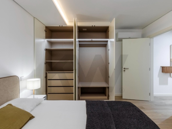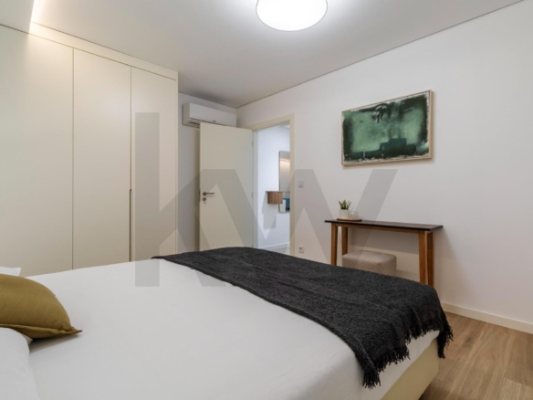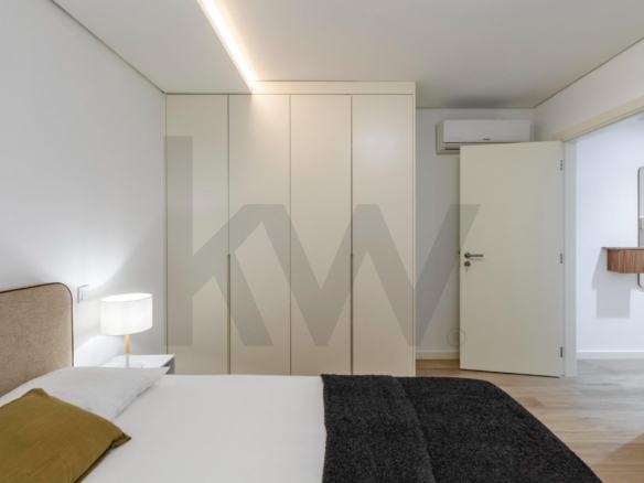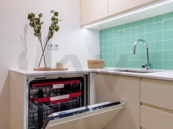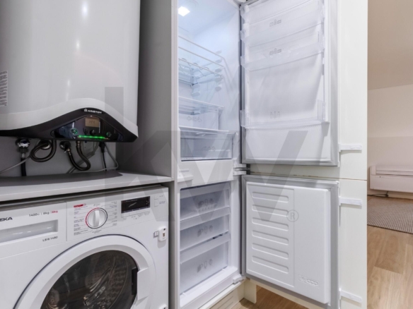 A cozinha está totalmente equipada com eletrodomésticos da marca TEKA (placa de indução, forno, frigorífico, máquina de lavar loiça e máquina de lavar/secar roupa) e o apartamento dispõe de ar condicionado, assegurando praticidade e conforto em todas as estações do ano.