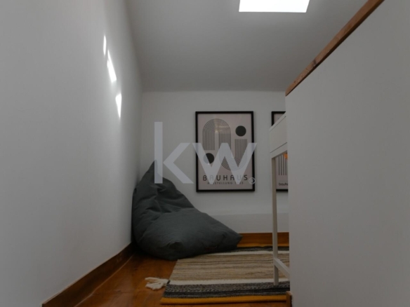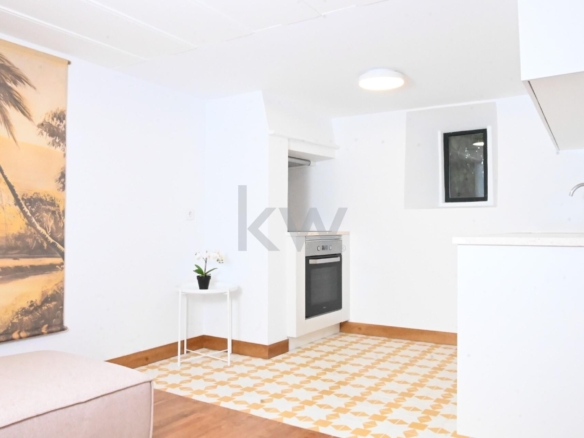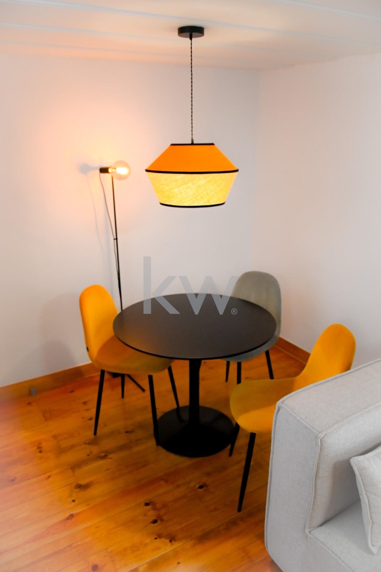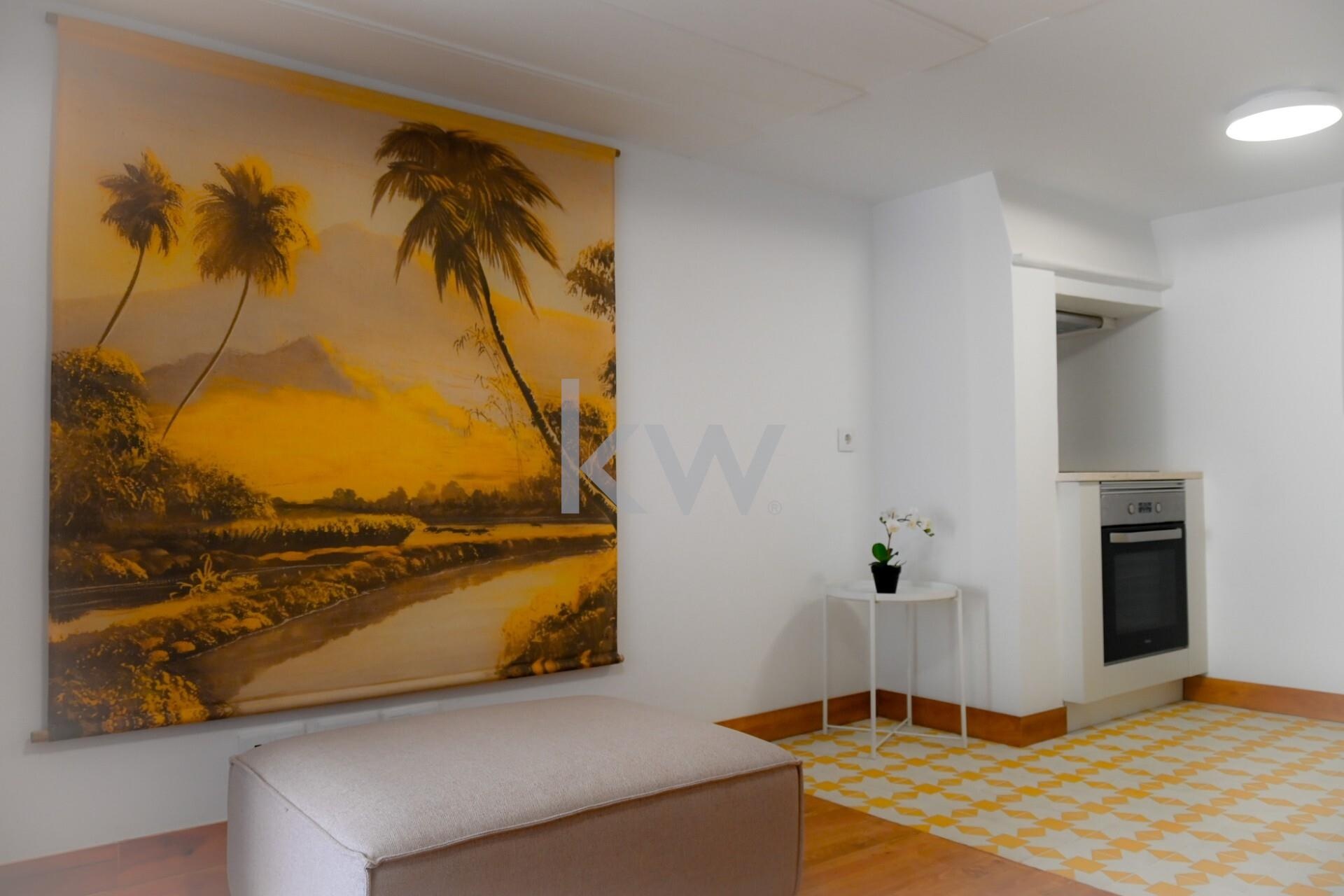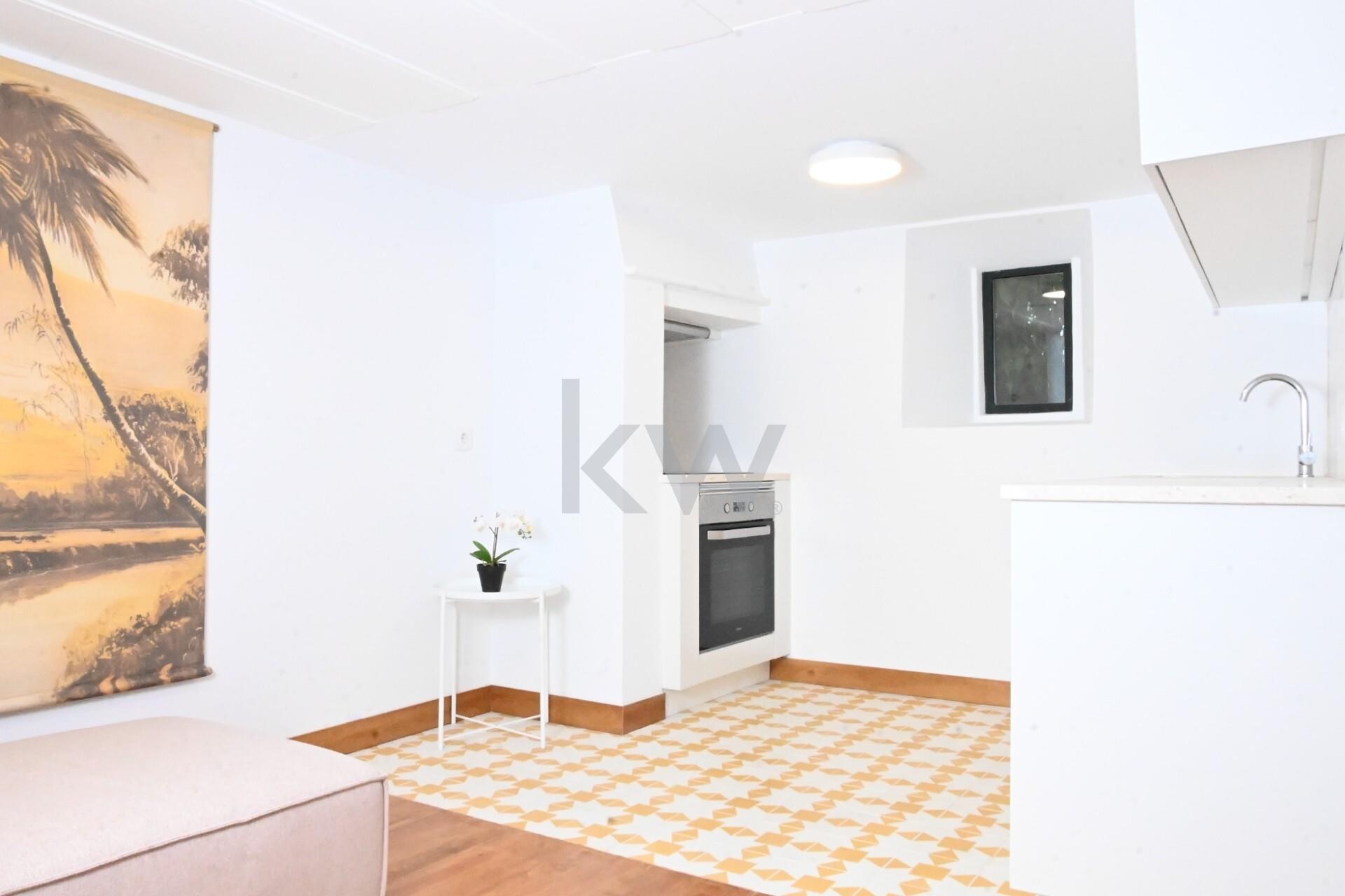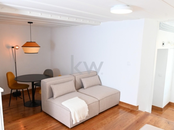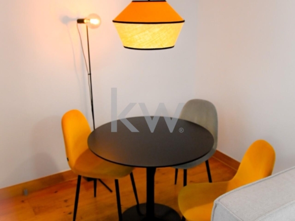 Apartamento T1+1 totalmente remodelado, semi equipado e mobilado, inserido em prédio objeto de reabilitação em 2024, mantendo a traça original.
