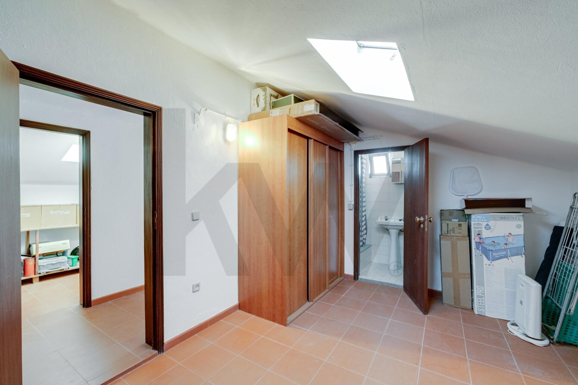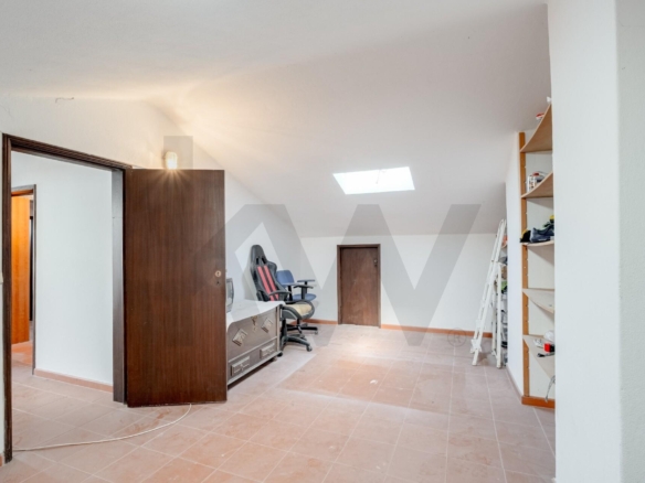 Sótão Aproveitado com mais 3 divisões, casa de banho e espaço para arrumos, proporcionando versatilidade para adaptar às suas necessidades.