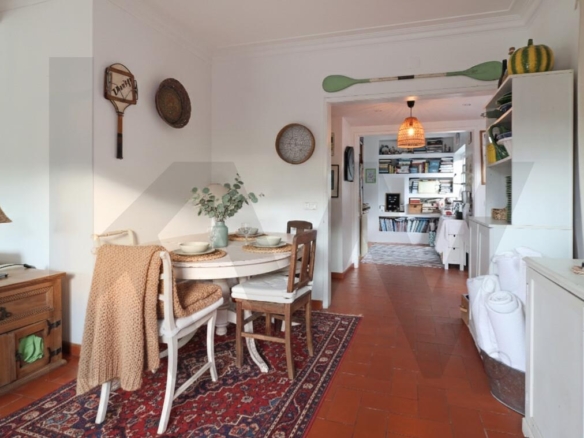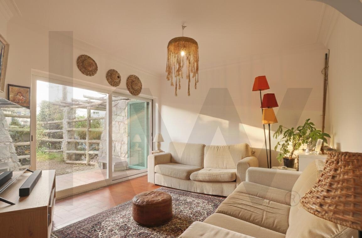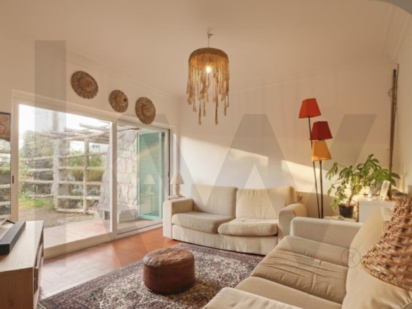 Ao entrar sente-se o conforto de uma sala cheia de luz com vista para o terraço e jardim da casa, espaço de refeiçoes e ainda uma zona de escritório.