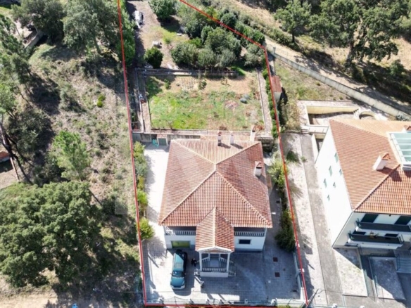 A moradia foi construída num terreno com 1900m2, tem zona de cultivo e terraço com ladrilhos à volta da casa. Tem um anexo para casa do gás e portão automático. A propriedade está totalmente vedada e não necessita de qualquer obra estrutural, contudo, necessita de alguns reparos.