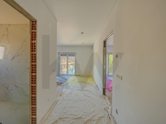 Moradia T3 geminada em construção, localizada em São João do Estoril, próximo da saída para a A5.