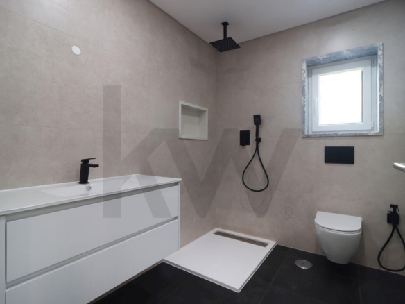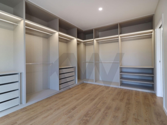 A moradia conta com estores eléctricos, aspiração central, pavimento radiante nos pisos 0 e 1 e pré-instalação para ar condicionado.