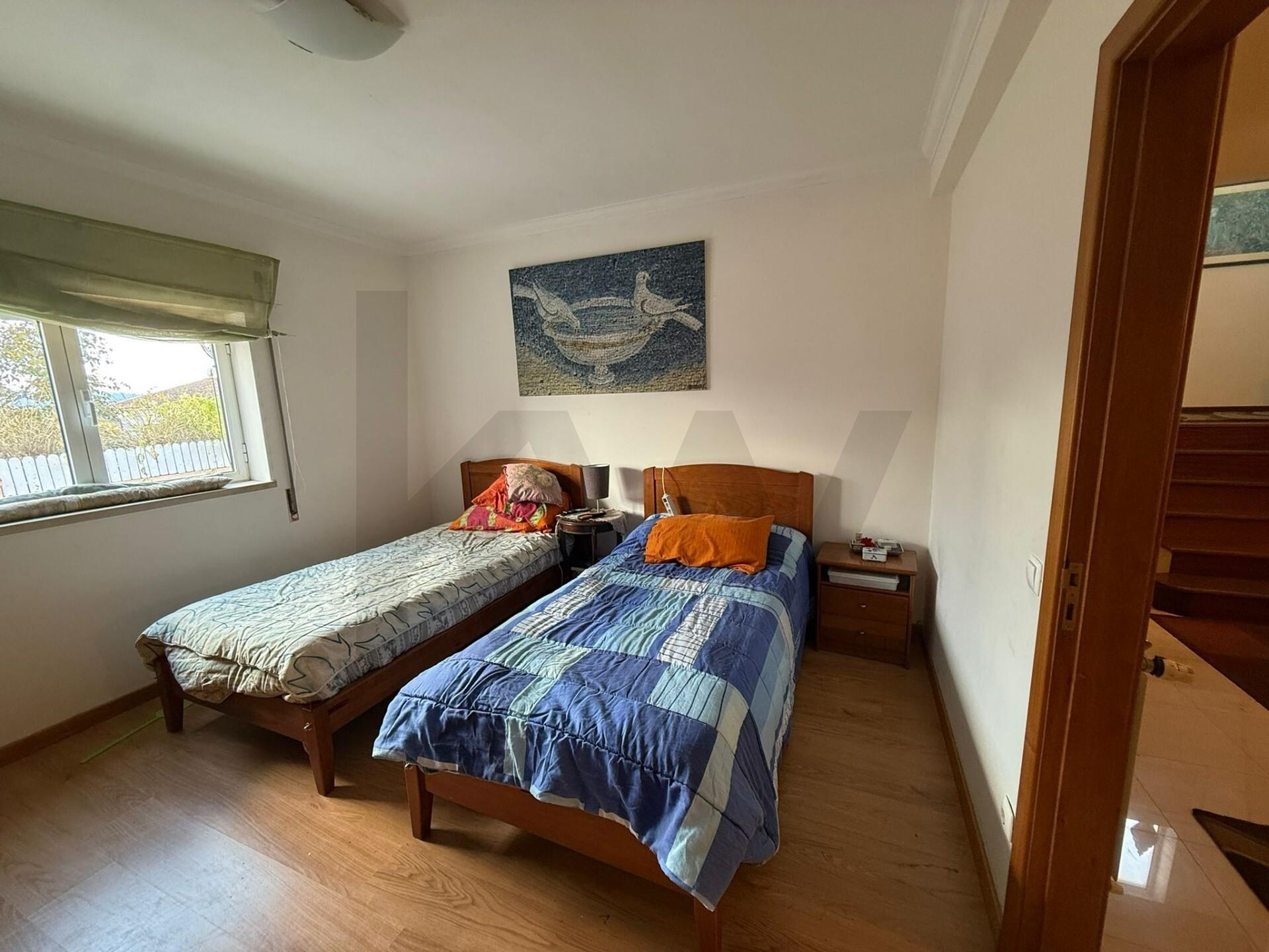 A moradia dispõe ainda de lugar para dois carros, vidros duplos que asseguram um bom isolamento térmico e acústico, e uma construção sólida que se mantém em excelente estado.