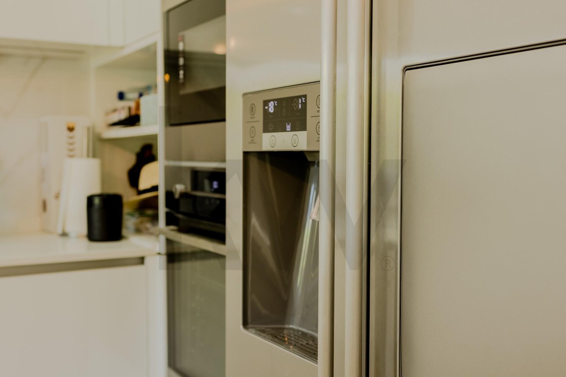 Cozinha totalmente equipada e sala de estar distinta, ambas com áreas bem definidas e separadas