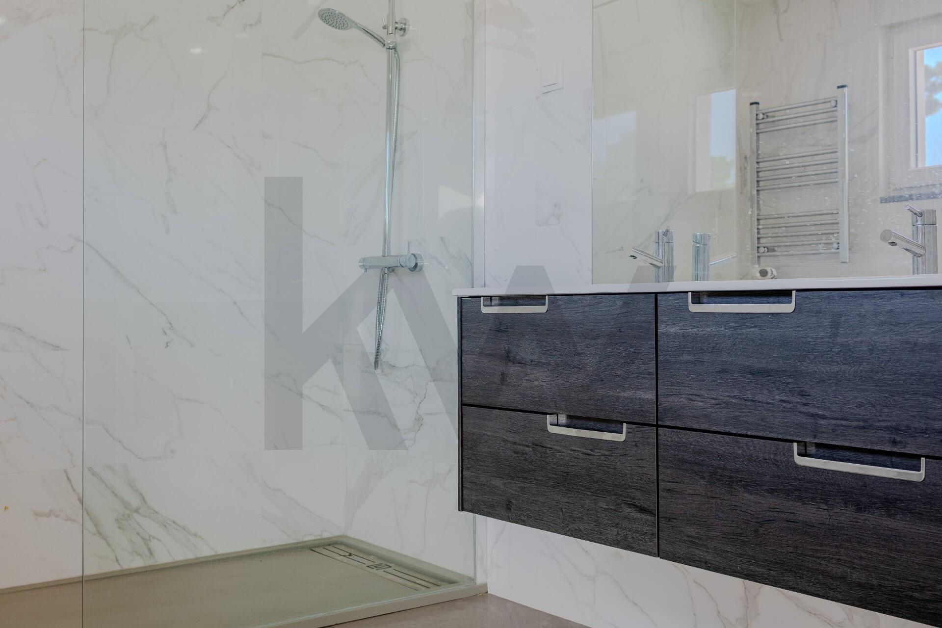 4 casas de banho completas de acabamentos modernos e funcionais