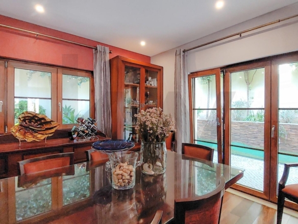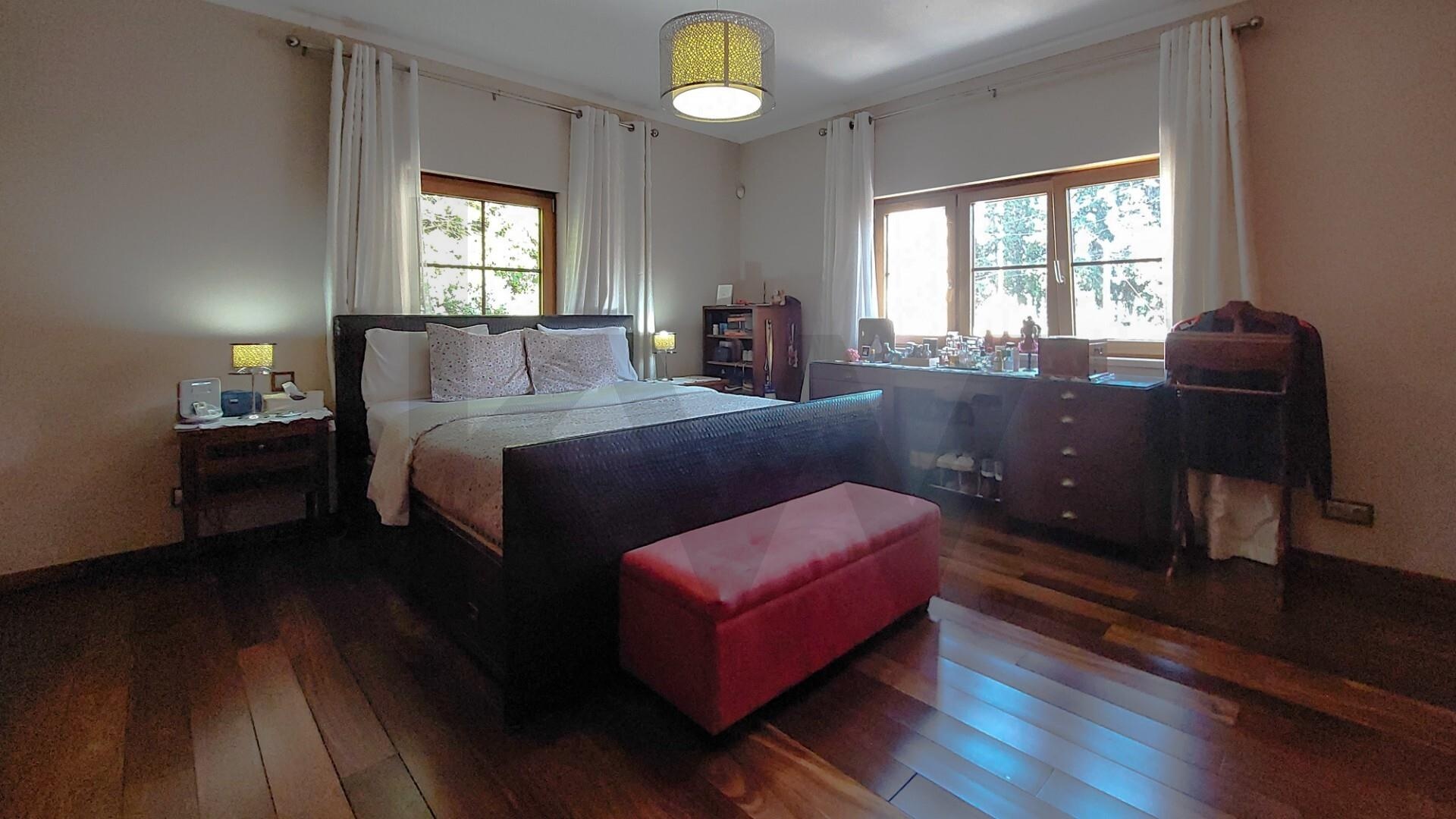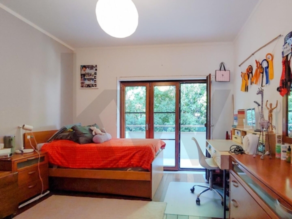 Três quartos acolhedores, incluindo uma Master Suite generosa com duplos roupeiros e um segundo quarto com armários embutidos e varanda encantadora com vista para a piscina.