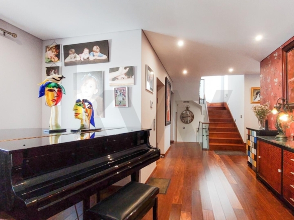 No piso inferior, descobre um espaço duplo aberto com infinitas possibilidades: biblioteca, cinema, escritório ou o seu refúgio pessoal. Inclui adega para os apreciadores de vinhos e casa de banho completa.