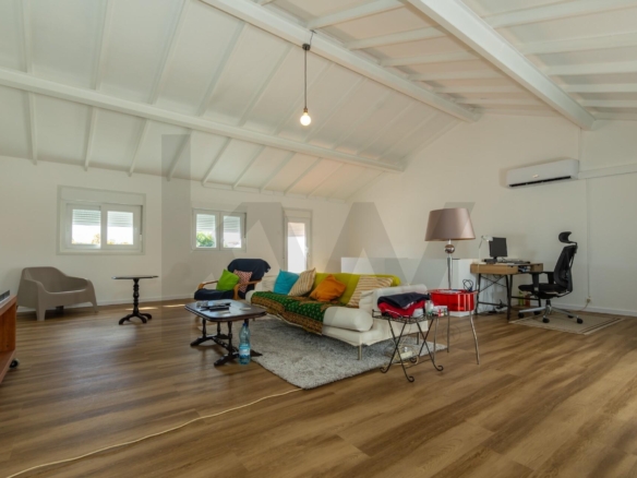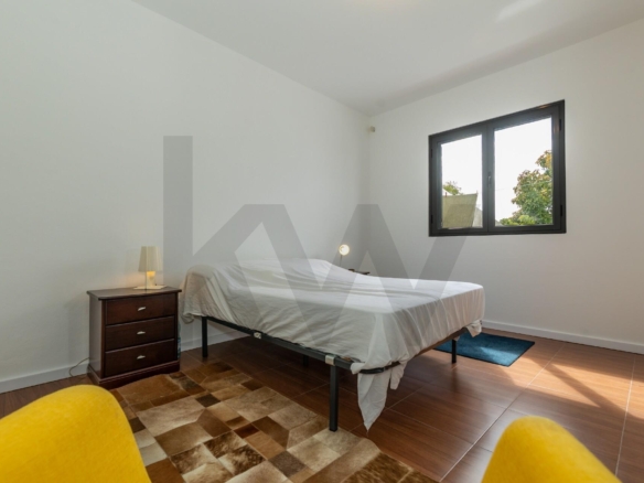 É uma moradia totalmente remodelada com painéis solares com bateria e janelas em alumínio e PVC.