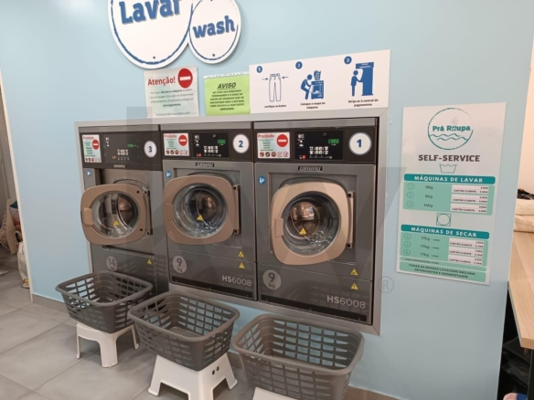 Lavagem: 2 máquinas (9kg) + 1 máquina (14kg) + 1 máquina (24kg — por montar).