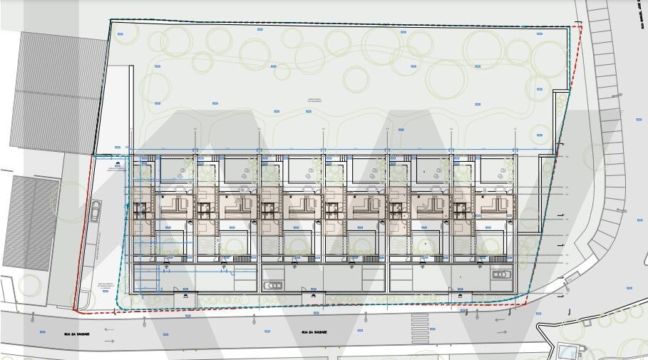 Parcela urbana com 960 m2, com uma casa destinada a habitação em ruína e um tanque, com área de implantação de 299,82, área bruta de construção de 441,55 m2 e logradouro de 660,18 m2.