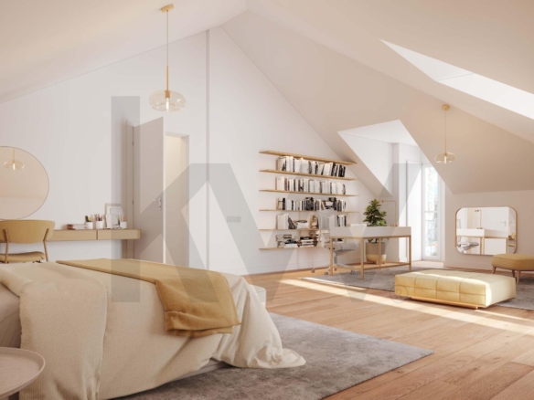 Com 92,17 m² de área bruta privativa, este apartamento distingue-se pelas suas áreas amplas e pelo charme da luz natural que entra através das janelas de cobertura inclinada, que podem ser abertas para ventilação.