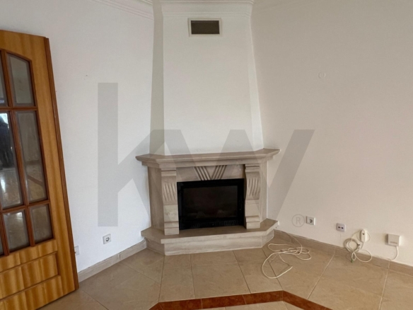 T2 -Sala com Lareira, 2 Quartos com áreas muito simpáticas, em bom estado de conservação (precisa de pintura). 2 WC, uma Suite.