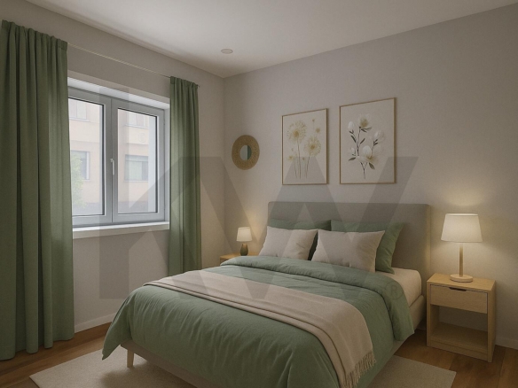 Complementando estas características, o apartamento dispõe ainda de arrumos, oferecendo soluções de arrumação essenciais para manter os espaços organizados e funcionais.